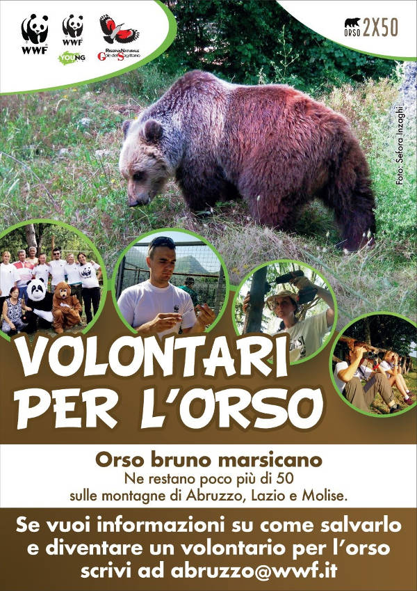 Continuano le iniziative messe in campo dal WWF per la tutela dell’Orso bruno marsicano in Abruzzo, ma per vincere la sfida e consentire a questa sottospecie unica al mondo di continuare a esistere c’è bisogno dell’aiuto di tutti. Per questo l’Associazione cerca volontari disponibili a offrire un po’ del proprio tempo per realizzare azioni pratiche in favore di questa specie simbolo, di cui restano circa 50 individui. A maggio 2019 il WWF ha lanciato la campagna Orso2x50 per contribuire a raggiungere l'ambizioso obiettivo di raddoppiare il numero di individui nell’areale della specie entro il 2050. Sono state per questo già attivate diverse misure e programmate molte azioni, tra le quali incontri pubblici, flash-mob, campi di volontariato, distribuzione e montaggio di recinti elettrificati, iniziative di sensibilizzazione rivolte a bambini e adulti, potature e recupero di alberi da frutto, ricerca dei segni di presenza, pulizia di sottopassi lungo i principali corridoi ecologici. Nonostante l’emergenza Covid, le iniziative sono continuate pure nel 2020 e sono riprese a pieno ritmo per l’anno in corso.