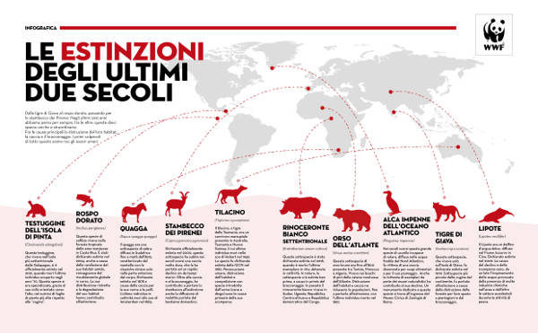 17 novembre 2021 - Nuovo report WWF: l’impatto dell’uomo ha velocizzato la ‘perdita naturale’: scompaiono specie animali e vegetali ad un ritmo 1.000 volte superiore al tasso naturale. QUI il report "Estinzioni: non mandiamo il pianeta in rosso">>