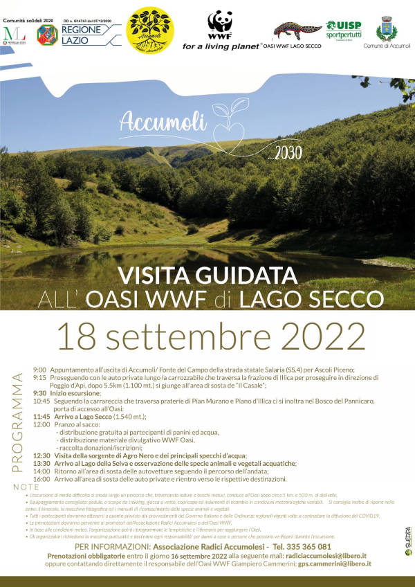 14 settembre 2022 - L’Oasi WWF di Lago Secco è situata al centro della valle del torrente Chiarino (comune di Accumoli - RI) e compresa nel Parco Nazionale del Gran Sasso e Monti della Laga, tra gli ambienti più selvaggi dell’Appennino centrale. Per prenotare presso il WWF scrivere a: Questo indirizzo email è protetto dagli spambots. È necessario abilitare JavaScript per vederlo.