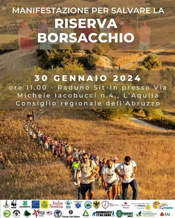 29 gennaio 2024 - Convocato per domani alle ore 11.00 il sit-in davanti al Consiglio regionale a L'Aquila in difesa della Riserva regionale del Borsacchio. Tuteliamo le aree protette e la fondamentale funzione ecologica che svolgono.