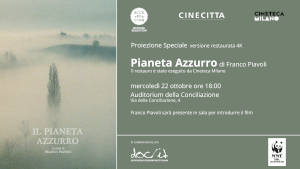 21 ottobre 2025 - Il WWF Roma e Area Metropolitana partecipa a questa importante iniziativa presentata nell'ambito della Rassegna "Alice nella città" riconoscendo il valore dei contenuti ambientali del film "Pianeta Azzurro" di Franco Piavoli realizzato nel 1982. Franco Piavoli è uno dei registi più originali e lirici del cinema italiano contemporaneo.