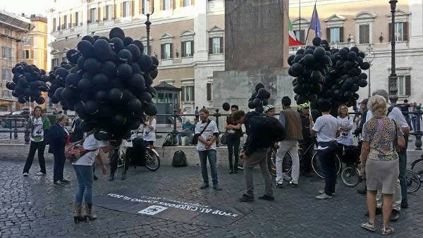 Per le strade di Roma, passando per il Ministero dello sviluppo economico fino a Montecitorio, una nuvola simbolica di co2 composta da 1000 palloncini neri con la scritta “Stop al carbone” per chiedere la chiusura di tutte le centrali a carbone in italia entro il 2025.