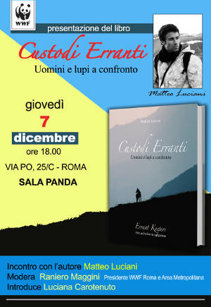 Roma 7/12/17 ore 18.00 – Presentazione del libro “Custodi Erranti. Uomini e lupi a confronto” di Matteo Luciani – Pandion edizioni 217