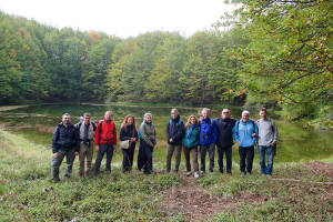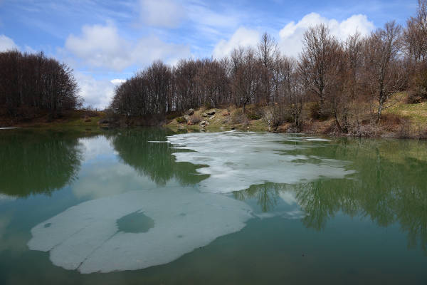 Passiamo invece nel comune di Accumoli (Rieti) purtroppo colpito dal terremoto che tutti conosciamo. E’ un angolo di “paradiso naturale” poco noto seppur compreso in uno dei più vasti ed importanti parchi nazionali italiani. Ci si arriva attraversando la faggeta del bosco del Pannicaro e i pascoli in quota che in questa stagione permettono all’escursionista di ammirare le abbondanti fioriture primaverili ed osservare alcune delle specie animali che qui trovano rifugio. Il percorso, piacevole e non particolarmente impegnativo, permette di vagabondare tra boschi e prati, superare i fossi modellati dalle abbondanti acque che ne caratterizzano il paesaggio, permettendo al visitatore di “immergersi” in un ambiente attorniato da scenari naturali ancora integri e di grande suggestione. Al centro di questa ampia valle glaciale, a circa 1.500mt di altitudine, si trovano i tre specchi d’acqua perenni meta della nostra visita; il lago Secco, il lago della Selva e la sorgente dell’Agro Nero. Questo biotopo, chiamato dai locali “i laghetti”, costituisce la stazione piu’ meridionale d’Europa della rana temporaria (Rana temporaria) che con il tritone alpestre (Triturus alpestris) simbolo dell’oasi, trovano qui il limite estremo del loro areale.