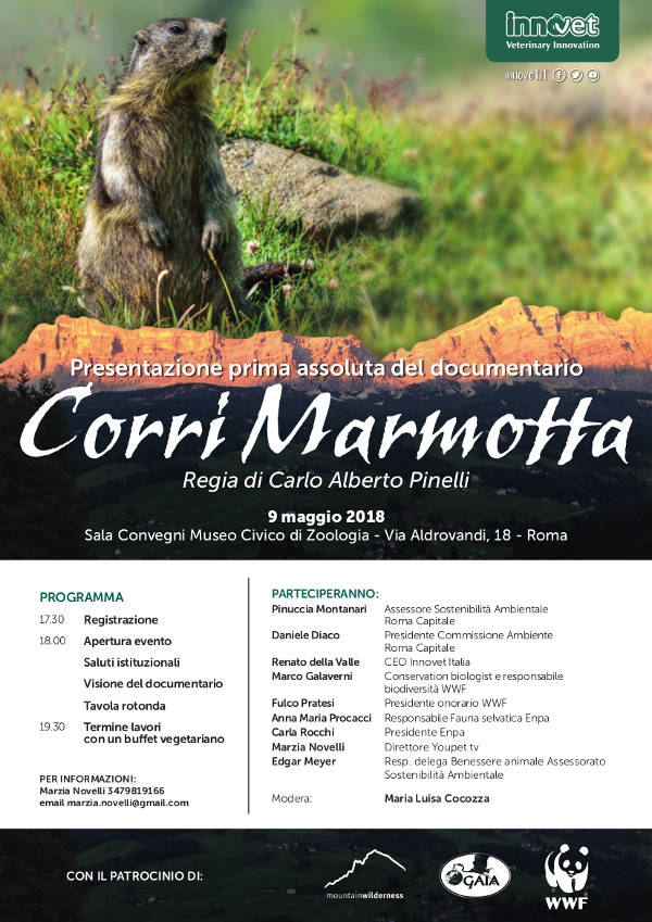 Innovet, con il patrocinio delle Associazioni ambientaliste WWF Italia e Mountain Wilderness International e della Onlus Gaia Animali & Ambiente, scende in campo con “Corri marmotta”, il documentario naturalistico progettato per sensibilizzare l’opinione pubblica sull’abbattimento delle marmotte alpine che la Regione Alto Adige autorizza dal 2017, in deroga a quanto previsto dalla legge nazionale sulla tutela di questa specie selvatica e senza pensare a possibili alternative di salvaguardia e protezione. Questa prima visione assoluta del documentario naturalistico verrà proiettata presso il Museo Civico di Zoologia di Roma, storica istituzione culturale aperta a promuovere e diffondere le conoscenze nell’ambito delle Scienze Biologiche e Naturali.