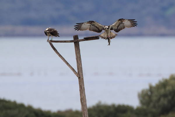 LA COPPIA. Mora è la femmina, inanellata in Corsica nel 2013 da Flavio Monti, uno dei naturalisti responsabili del Progetto falco pescatore. Nel 2014 seguendo altri falchi è arrivata in Maremma per la prima volta. Nel 2016 si è stabilizzata tra il Parco della Maremma e la laguna di Orbetello. Da due anni che fa su e giù tra le due aree. E la laguna le è sempre piaciuta per l'abbondanza di pesce. Mora ha un anello verde e Gps, che purtroppo non è più funzionante. Sull’origine del maschio non si hanno notizie certe, è stato chiamato Orbetello, ma è probabile che sia uno dei tanti migratori nordici. Da due anni Orbetello e Mora fanno coppia, ma finora senza successo nella riproduzione. È il primo anno che Mora non è ripartita a marzo lasciando il nido vuoto, mentre il maschio è rimasto tutto anno in laguna.