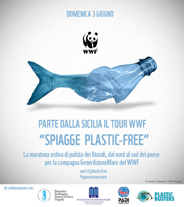 PROSEGUE INTANTO IL TOUR SPIAGGE PLASTIC FREE. Il tour ‘Spiagge plastic-free’ del WWF Italia, per liberare le spiagge italiane dalla plastica, partito domenica 3 giugno dalla Sicilia. Per iscriversi basta scegliere la spiaggia sulla Mappa e inviare la propria adesione, tutto sul sito www.wwf.it/plasticfree. Ai primi 10 iscritti per ciascun evento organizzato dal WWF verrà consegnato il kit volontari (berretto, pettorina, volantini con le soluzioni possibili per ridurre la plastica nella vita quotidiana). Il Tour ha il sostegno di WIND che ha lanciato per l’occasione una speciale iniziativa dedicata ai suoi clienti e alla difesa della tartaruga marina Caretta caretta, vittima inconsapevole dell’inquinamento da plastica. Tutti coloro che sottoscriveranno l’opzione solidale “Wind e WWF per il Mediterraneo” sceglieranno infatti di donare 50 centesimi al mese al WWF, donazione che Wind raddoppierà. I fondi raccolti saranno interamente devoluti a sostegno del programma #GenerAzioneMare.