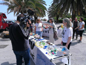 16 giugno: volontari del WWF hanno allestito nel centro di Pescara la mostra “Il mare del futuro?”, una esposizione del tutto particolare frutto della raccolta simbolica di materiale spiaggiato raccolto durante l’operazione di pulizia “Plasti Free”. L’iniziativa, che ha il patrocinio della Regione Abruzzo Settore Ambiente e del Comune di Pescara, è all’interno delle azioni del progetto #GenerAzioneMare che il WWF Italia ha lanciato lo scorso anno per la difesa delle coste e dei mari italiani. “L’Italia è al centro del Mar Mediterraneo, un mare piccolo rispetto agli Oceani, appena l’1% dei mari del mondo, ricco di biodiversità, ma con un’impronta umana insostenibile per l’inquinamento da plastica: nel bacino del Mediterraneo si concentra infatti il 7% della microplastica globale”. Ha dichiarato all’apertura della mostra di Pescara il vicepresidente del WWF Italia Dante Caserta, che ha aggiunto: “Il Mare nostrum si sta trasformando in un mare di plastica e l’impatto sulle specie marine e sulla salute umana è enorme come abbiamo testimoniato nel nuovo report 'Mediterraneo in trappola: salvare il mare dalla plastica' lanciato dal WWF Italia nelle scorse settimane. Non possiamo permettere che il Mediterraneo soffochi nella plastica: i danni che stiamo facendo al mare si stanno ripercuotendo su noi stessi”.