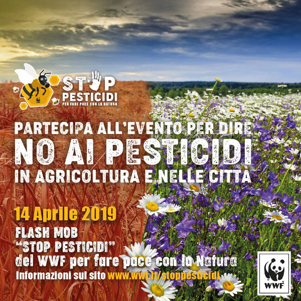 Il WWF ha organizzato per domenica 14 aprile, nel contesto di questa mobilitazione generale, un evento nazionale dedicato ai pesticidi, in vista dell’approvazione del nuovo Piano d’Azione Nazionale per l’uso sostenibile dei fitofarmaci, in attuazione della Direttiva europea sui pesticidi, 2009/128/CE. L’iniziativa si svolgerà in oltre 30 città italiane, un Flash Mob aperto alla partecipazione di tutti i cittadini per comporre la frase “stop pesticidi”, un’azione coordinata anche sui social network come Twitter e Facebook e pensato per vincolare l’utilizzo di pesticidi, in agricoltura, nella manutenzione di strade e ferrovie e per molti altri impieghi al fine di: