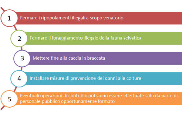 Strumenti previsti dalla legge come obbligatori e prioritari, raccomandati da ISPRA, ma largamente ignorati, tanto che il TAR Toscana ha recentemente sospeso la caccia al cinghiale in braccata. Per la difesa di appezzamenti inferiore all’ettaro, sono sufficienti poche ore di lavoro e poche centinaia di euro per realizzare recinzioni elettrificate a prova di cinghiale nei periodi più delicati. Azioni realizzabili grazie ai relativi fondi messi a disposizione dai Piani di Sviluppo Rurale cofinanziati dall’Unione Europea, finora scarsamente utilizzati. Infine, qualora siano ancora necessari interventi puntuali e scientificamente motivati per il controllo delle popolazioni, vanno privilegiate le catture agli abbattimenti selettivi, e in ogni caso devono essere effettuati esclusivamente da personale pubblico (ad esempio ex personale delle Provincie) adeguatamente formato a livello tecnico e scientifico, e in nessun modo in conflitto di interesse rispetto all’effettiva riduzione dei danni, da valutare e verificare su basi scientifiche per trovare soluzioni sempre più efficaci. “Non vorremmo che alcune associazioni agricole, che da sempre siedono nei direttivi degli Ambiti Territoriali di Caccia e non hanno speso una parola per l’assottigliamento del personale provinciale deputato alla materia, continuassero con gli stessi errori del passato senza trovare le soluzioni adeguate per gli agricoltori che rappresentano errori di cui, oramai, gli stessi agricoltori cominciano a rendersi conto. Solo con un approccio razionale, scientifico e strutturato, senza il ricorso a provvedimenti “spot” o di propaganda, potremo risolvere davvero e a lungo termine i problemi degli agricoltori, in equilibrio con la natura e gli ecosistemi”.