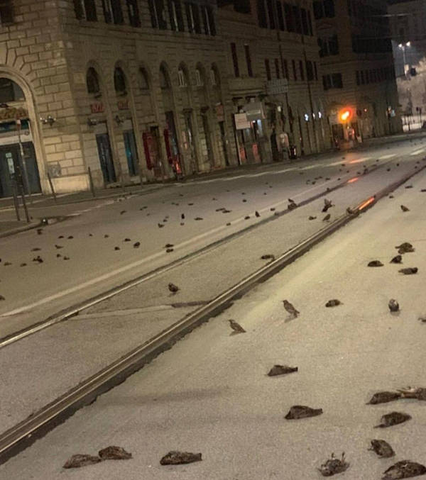 Questa foto che ci è stata trasmessa testimonia una desolata Via Cavour a Roma costellata da centinaia di individui di Storno storditi a terra se non già senza vita. Forse in futuro sarà bene prevedere anche adeguati controlli e non limitarsi ad adottare provvedimenti che ancora in troppi evidentemente ritengono di poter ignorare.