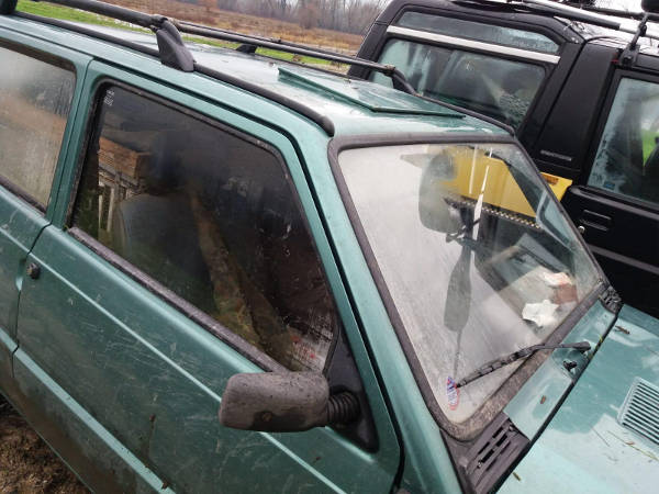 Una macchina modficata con il tettuccio per sparare dall'interno