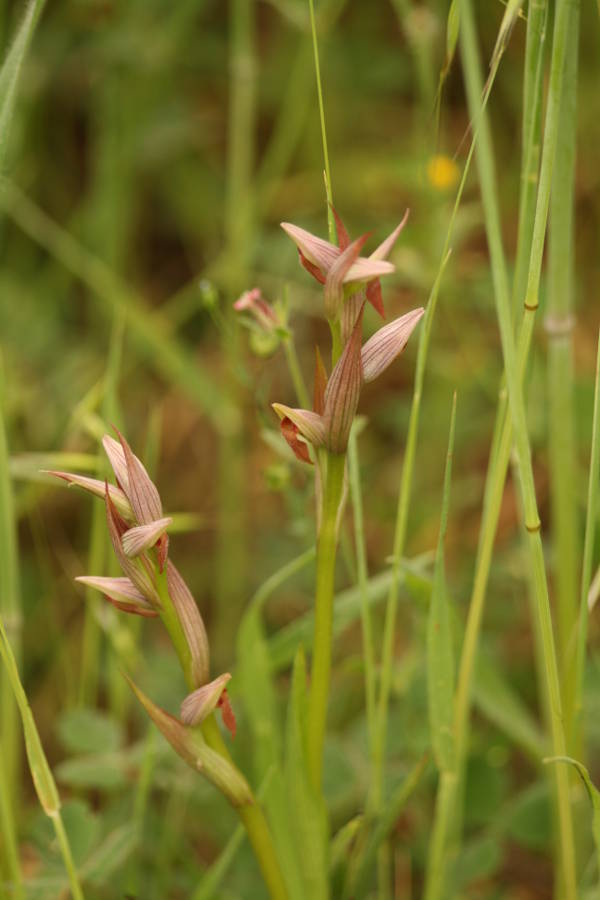La Serapide minore (Serapias parviflora Parl., 1837) è una pianta appartenente alla famiglia delle Orchidacee. È una specie vegetale che, rispetto alle altre del genere Serapias, presenta i fiori più piccoli ed è alta 20–30 cm, con foglie lanceolate-lineari e carenate. In Italia è comune nelle regioni meridionali e in Sicilia e Sardegna, più rara nel resto della penisola ove è presente sul versante tirrenico sino alla Liguria e su quello del medio-alto adriatico, quindi che sia stata fotografata nel Parco Archeologico di Centocelle a Roma ha ancora più valore. L'infiorescenza, lassa e pauciflora, porta da 4 a 8 fiori. Ancora per tutto il mese di maggio sarà possibile apprezzarne la fioritura che in genere ha inizio nel mese di marzo.
