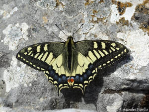 Il Macaone (Papilio machaon) è un lepidottero appartenente alla famiglia Papilionidae. Con i suoi quasi 8 centimetri di apertura alare massima, non è difficile incontrarla e notarla soprattutto nelle campagne o in collina dall'inizio della primavera (periodo in cui le crisalidi sfarfallano), fino ad autunno inoltrato. I bruchi si nutrono di Apiaceae, come ad esempio il finocchio e la carota, ma a volte anche di prezzemolo o ruta. Se disturbati, estroflettono da dietro la testa un paio di ghiandole a forma di corno (osmeterium), che emettono un odore repellente provocato dall' acido butirrico che tiene lontani i predatori. Elegante ed agile nel volo, il maschio è anche difensore del proprio territorio; se vi capitasse di vederne due che volteggiano vicini in audaci acrobazie, probabilmente uno sta cercando di cacciare l'altro. Anche il Macaone presenta il tipico comportamento da butterfly hilltopping, ovvero cerca di volare sopra il punto più alto del terreno in cui si trova (dominio).