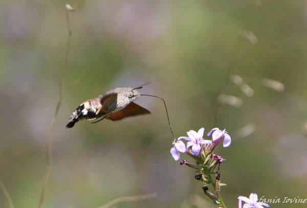 La sfinge del galio o sfinge colibrì (Macroglossum stellatarum) è un lepidottero appartenente alla famiglia Sphingidae. Quando attiva, passa con estrema rapidità da un fiore all'altro senza mai posarsi: resta in volo librato su di essi per pochi secondi battendo velocemente le ali ad una frequenza di circa 200 volte al secondo e protendendo la lunga spirotromba verso i fiori per suggere il nettare, analogamente ai colibrì. Ha abitudini diurne e crepuscolari. Vola nei mesi caldi dell'anno e si posa solo per riposare dopo il crepuscolo, ben nascosta dalla vegetazione, coprendo con le ali anteriori le posteriori e lasciando scoperto l'addome. E' facilmente osservabile in giardini, parchi, prati, cespugli e macchie ai margini dei boschi, dove crescono le piante su cui si alimentano (caprifogli, valeriana rossa e molte altre). Le larve solitamente pascolano su galio o robbia, ma sono state documentate anche su valeriane, stellarie ed epilobii. Gli adulti sono particolarmente attratti da fiori nettarini dal calice lungo e sottile, a cui attingono con la proboscide evitando così la competizione con altri insetti. Esempi di tali piante comprendono Centranthus, Jasminum, Buddleia, Nicotiana, Primula, Viola, Syringa, Verbena, Echium, Phlox, Stachys.