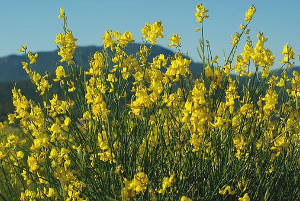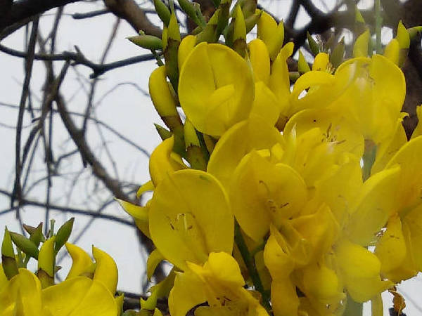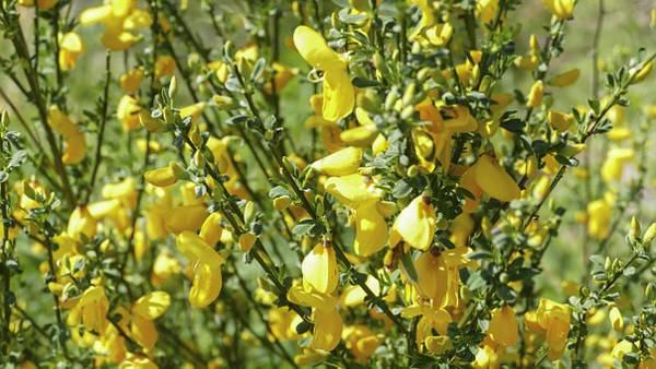 E' questo il momento della fioritura per la Ginestra comune (Spartium junceum), una pianta arbustiva alta dai 50 ai 200 cm (fino ad arrivare a 400 cm), con fusto eretto o ascendente, cilindrico, fibroso, tenace, cavo, di colore verde, molto ramificato e con numerosi getti nuovi alla base. Appartiene alla famiglia delle Fabaceae.