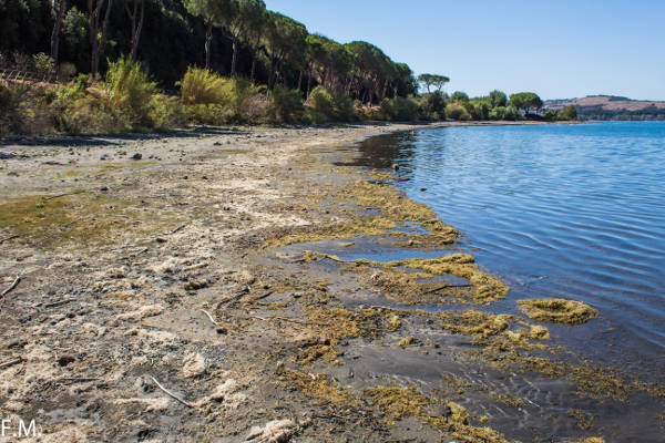 È il secondo lago del Vulcano Laziale, separato dal lago Albano dal Monte Cavo. Occupa una superficie di 1,67 km² e bagna Nemi. L’altitudine è di 305 metri slm e la profondità massima 34 metri. Il suo stato ambientale ed ecologico è minacciato dall’inquinamento degli scarichi civili, dall’edilizia abusiva, al turismo non sempre sostenibile e alla pesca che ha portato tra l’altro all’introduzione di specie alloctone quali il persico sole, alla carpa e alla specie invasiva sudamericana del pesce re. I caratteri geologici del bacino, originatosi in una depressione craterica, sono tipici di un territorio vulcanico e presenta zone basaltiche a prismi esagonali con ricchezza di minerali silicati e sorgenti carbonate, rocce intrusive (graniti) ed effusive recenti (tufi). I caratteri botanici sono definiti da una vegetazione a cannuccia in generale e da abbondante vegetazione sommersa a Myriophyllum spicatum e Potamogeton crispus, giunco e carice lungo le sponde in prevalenza nella zona nord del Lago dove i fondali sono più bassi. Le pendici sono coperte da boschi ad essenze caducifoglie e sempreverdi con il relitto di una vegetazione mesofila di grande estensione tale da influire decisamente sulla meteorologia romana. L’impatto antropico, l’introduzione delle specie alloctone e la diminuzione del livello delle acque dovuto alle idrovore installate nel ’44 per la ricerca delle leggendarie navi di Caligola, sono tutti elementi che hanno contribuito a determinare nel tempo un impoverimento della biodiversità ittica e dell’avifauna del lago, quest’ultima presente principalmente nel periodo di svernamento con piccoli stormi di anatre e folaghe.